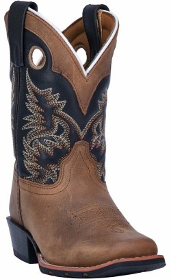 Dan Post Rascal Leather Children's Boot. UnisexLEATHER.8" HEIGHT.10" CIRCUMFERENCE.CUSHION COMFORT INSOLE.SQUARE TOE.RUBBER OUTSOLE.COWBOY HEEL.H...