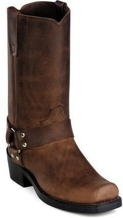 Gaucho Distress Leather Harness Bootwith 11" Leather Shaft.Leather lining. Full-grain Leather.Steel Shank. 2 inch Strider Heel.Cushion Flex Insole....